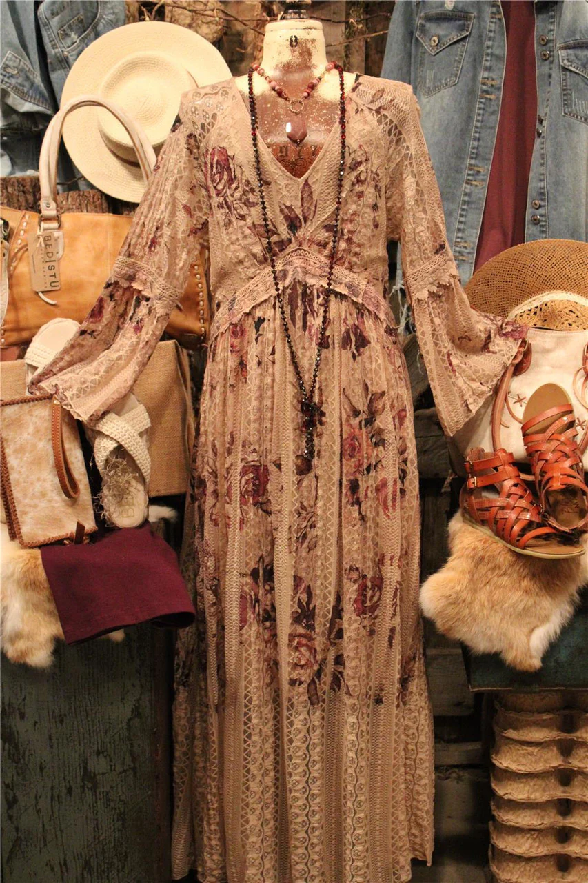 Lead Singer Taupe Two Roses Maxi Dress